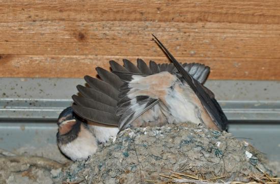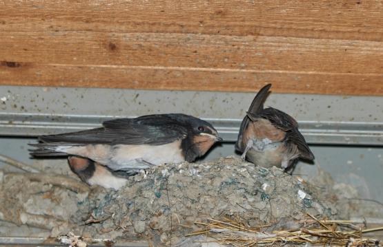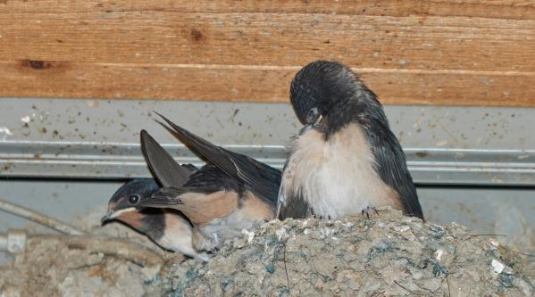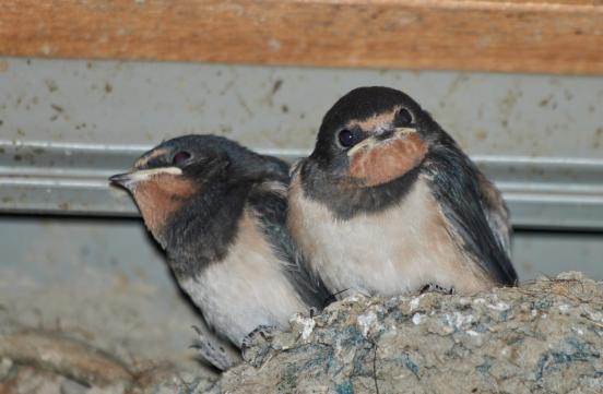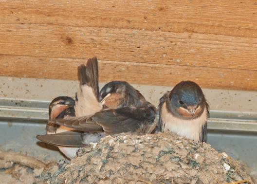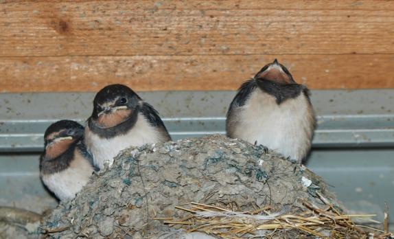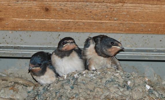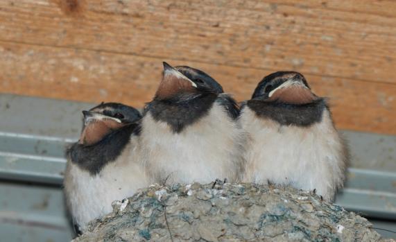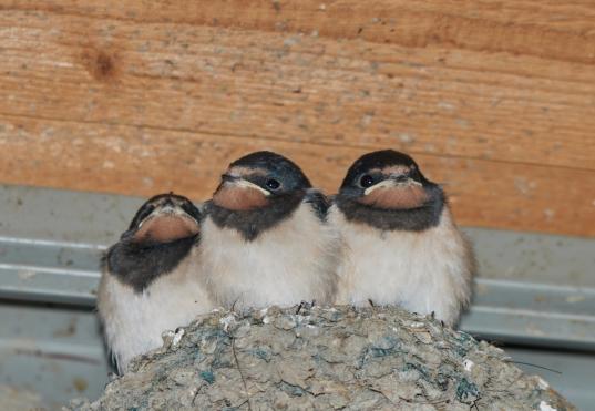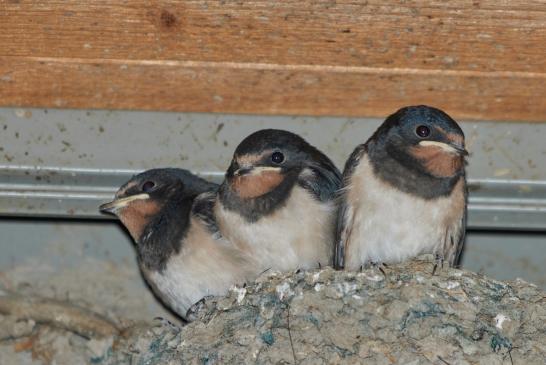 Per Zufall sah ich heute noch ein Nest mit jungen Schwalben.