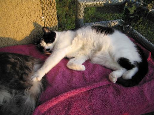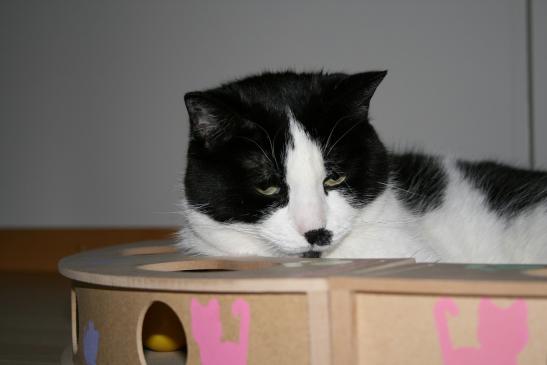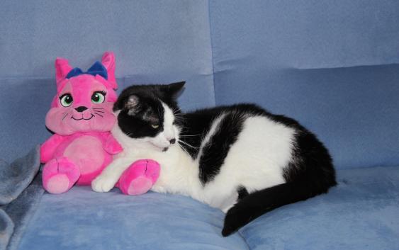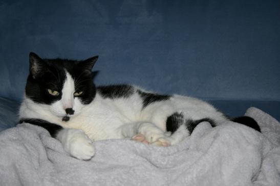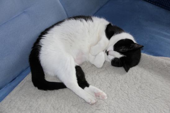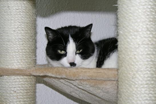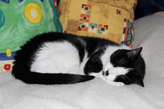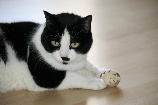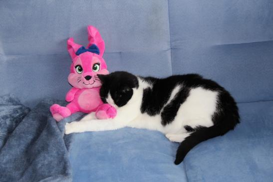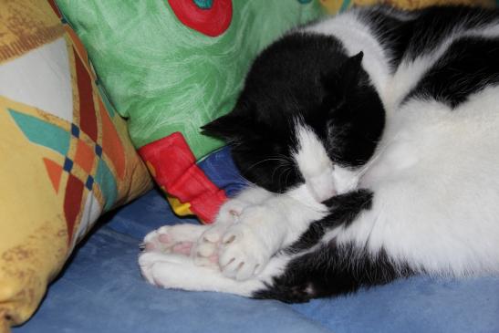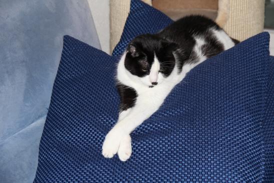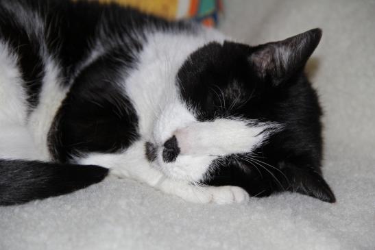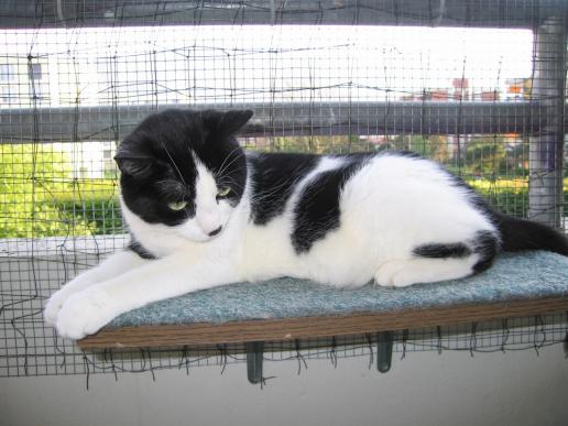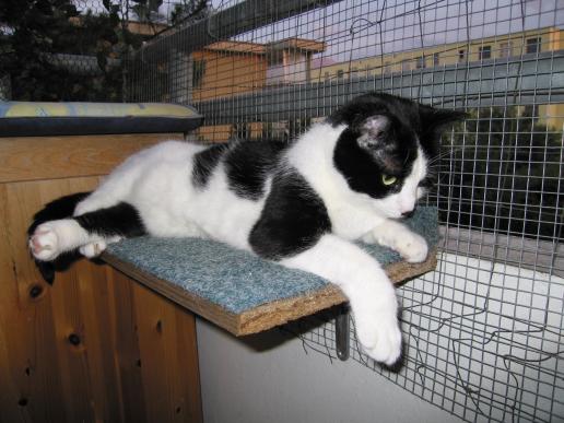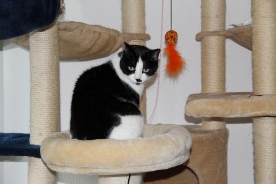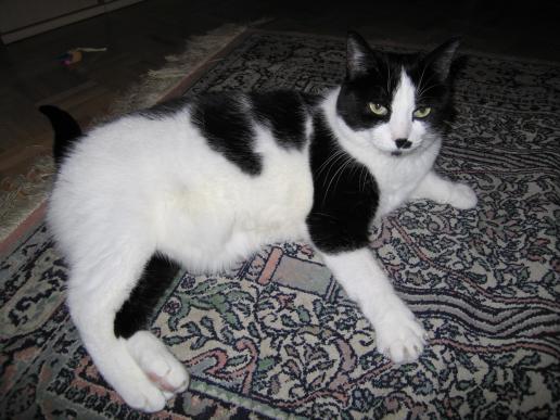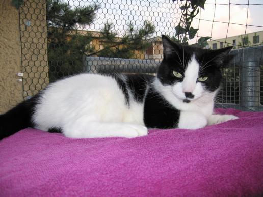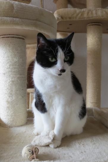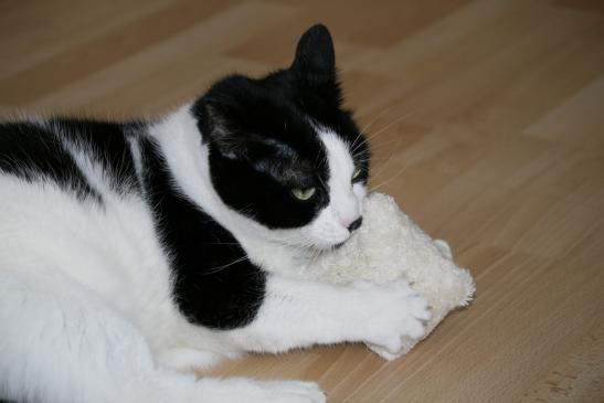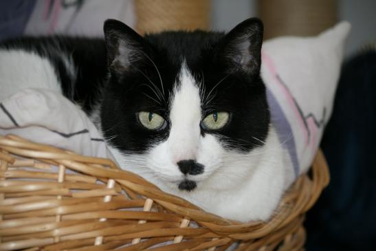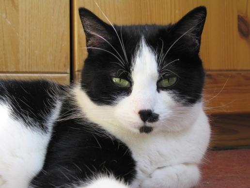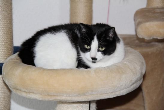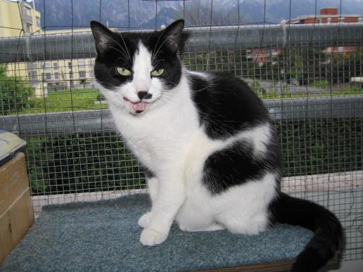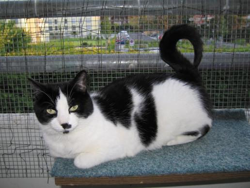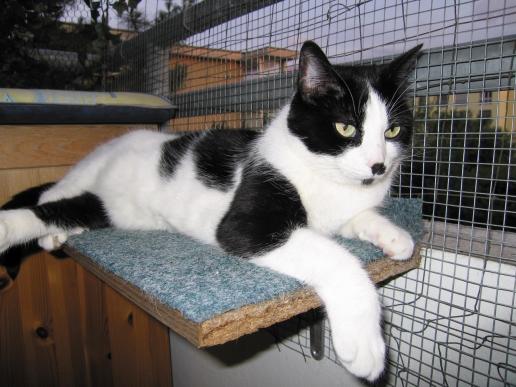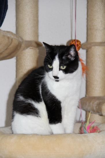 ( Europäische Hauskatze / schwarz weiss )