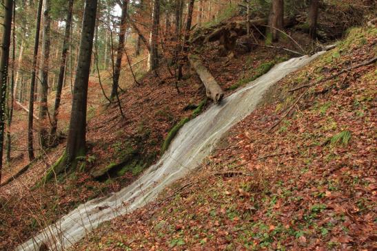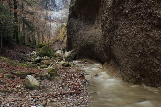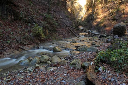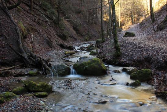 Der Hünibach, der die Schlucht durchfliesst, entspringt in einer Talmulde