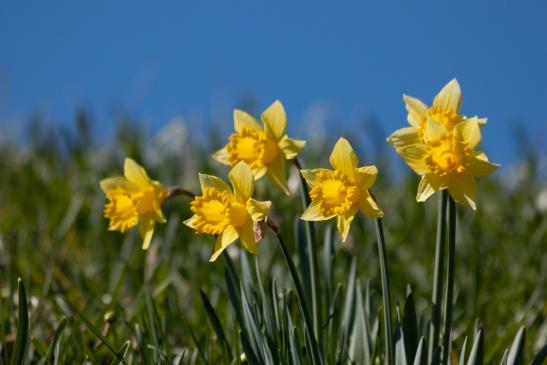 zu den Osterglocken in der Sonne.
