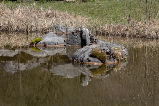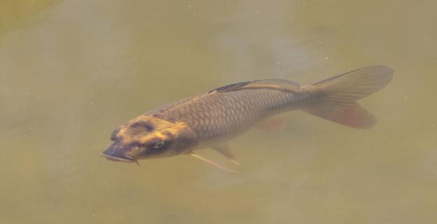 Leider war nur ein Frosch da, dafür war aber noch ein schöner Fisch im Teich am schwimmen.