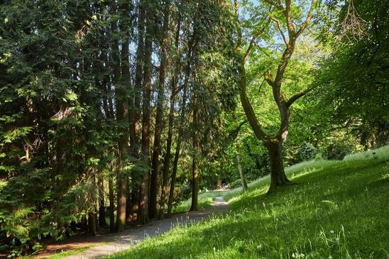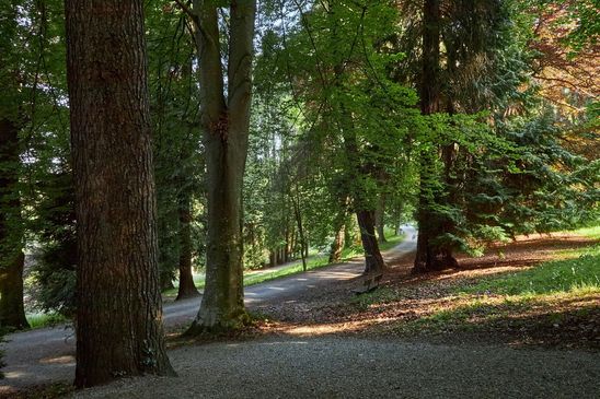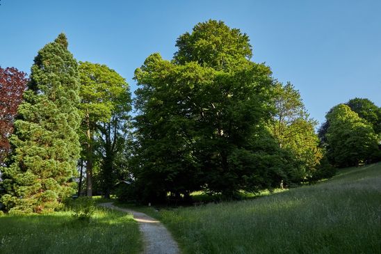 Im Schlosspark stehen viele fremdländische Exemplare von alten Bäumen wie