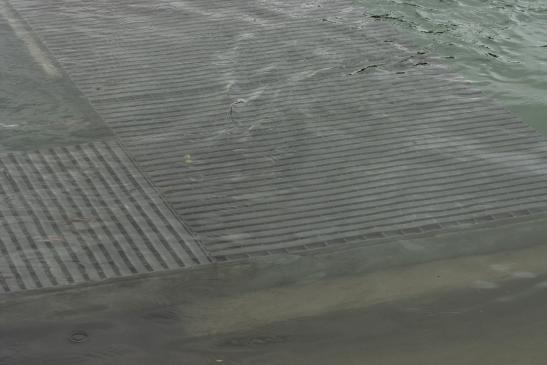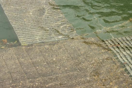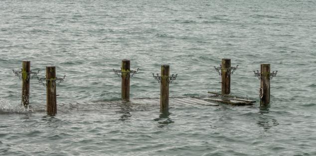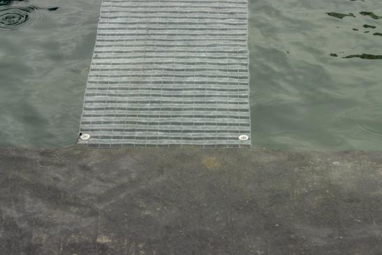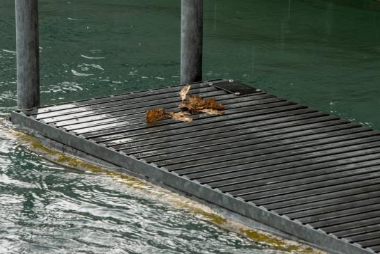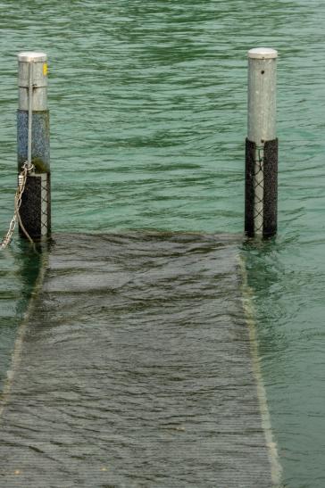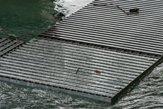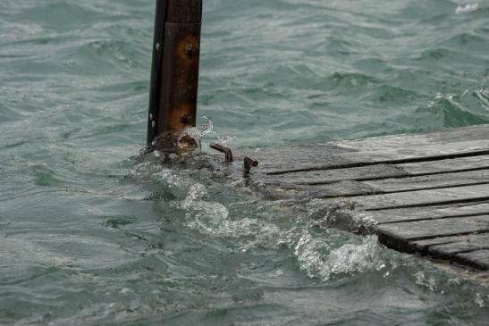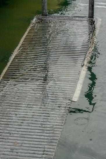 auf den wackligen Brettern zu seinem Boot zu kommen.