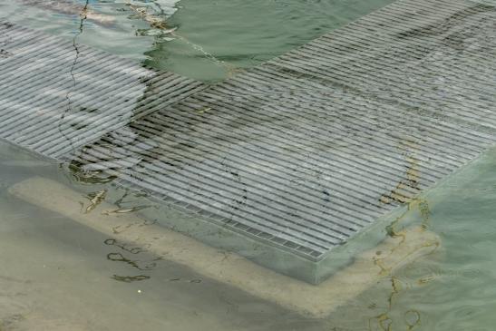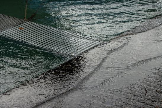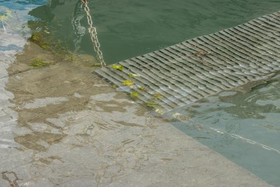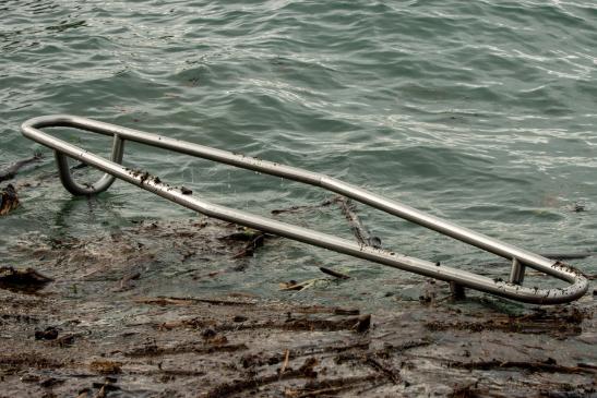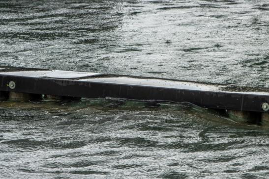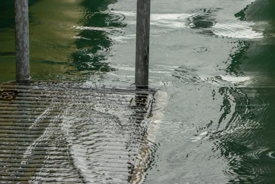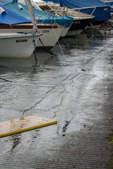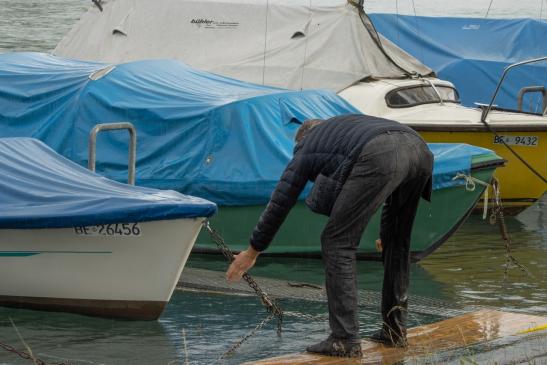 Ein Mann versuchte zu seinem Boot zu kommen, und fiel voll ins Wasser.
