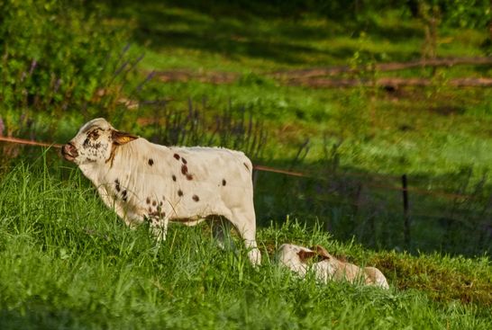 Die Zwergzebukühe mit den Kälbern und der Stier