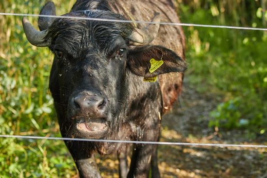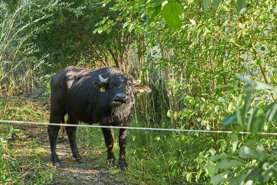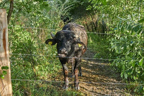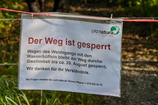 Die Wasserbüffel werden zur Zeit auf dem Weg durch das Gwattmösli gehalten.