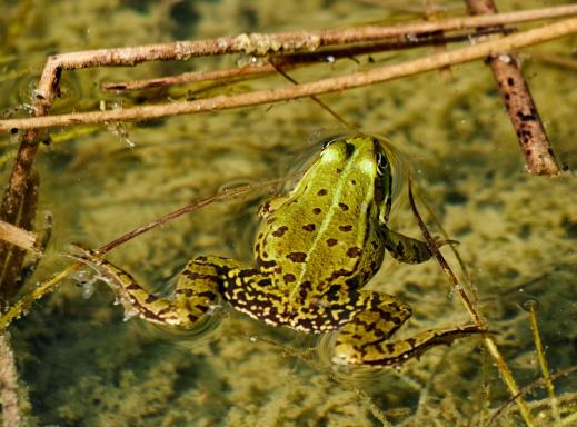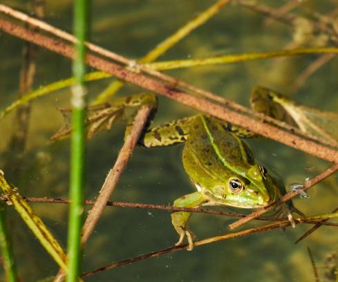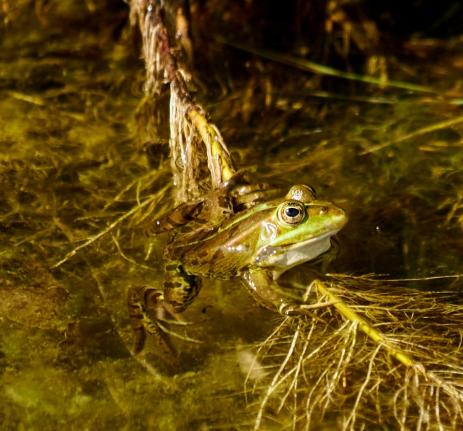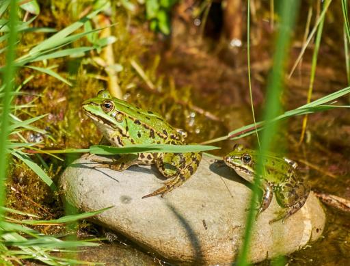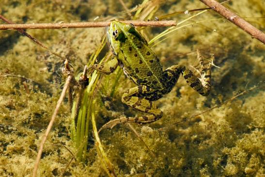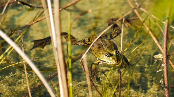 Die Frösche sind schon da, und einige Libellen auch.