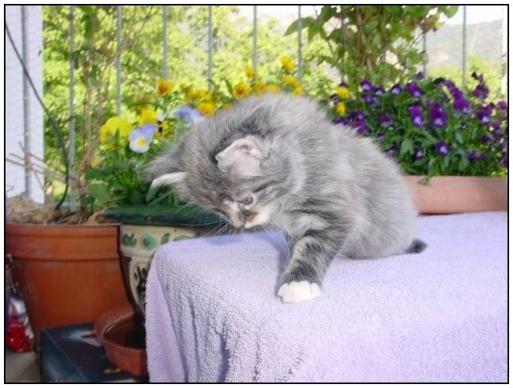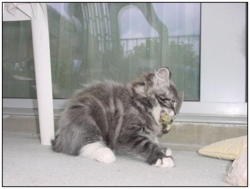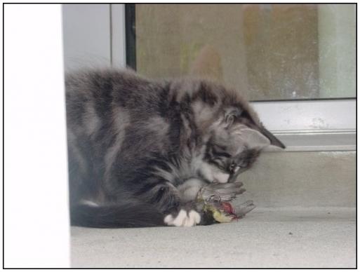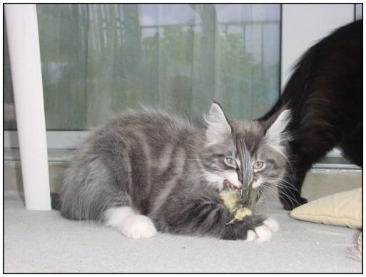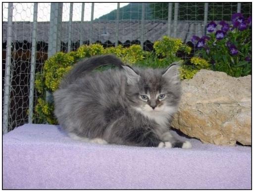 ( Nils of Blowing Tail / Maine Coon / blau silber tabby gestromt mit weiss )